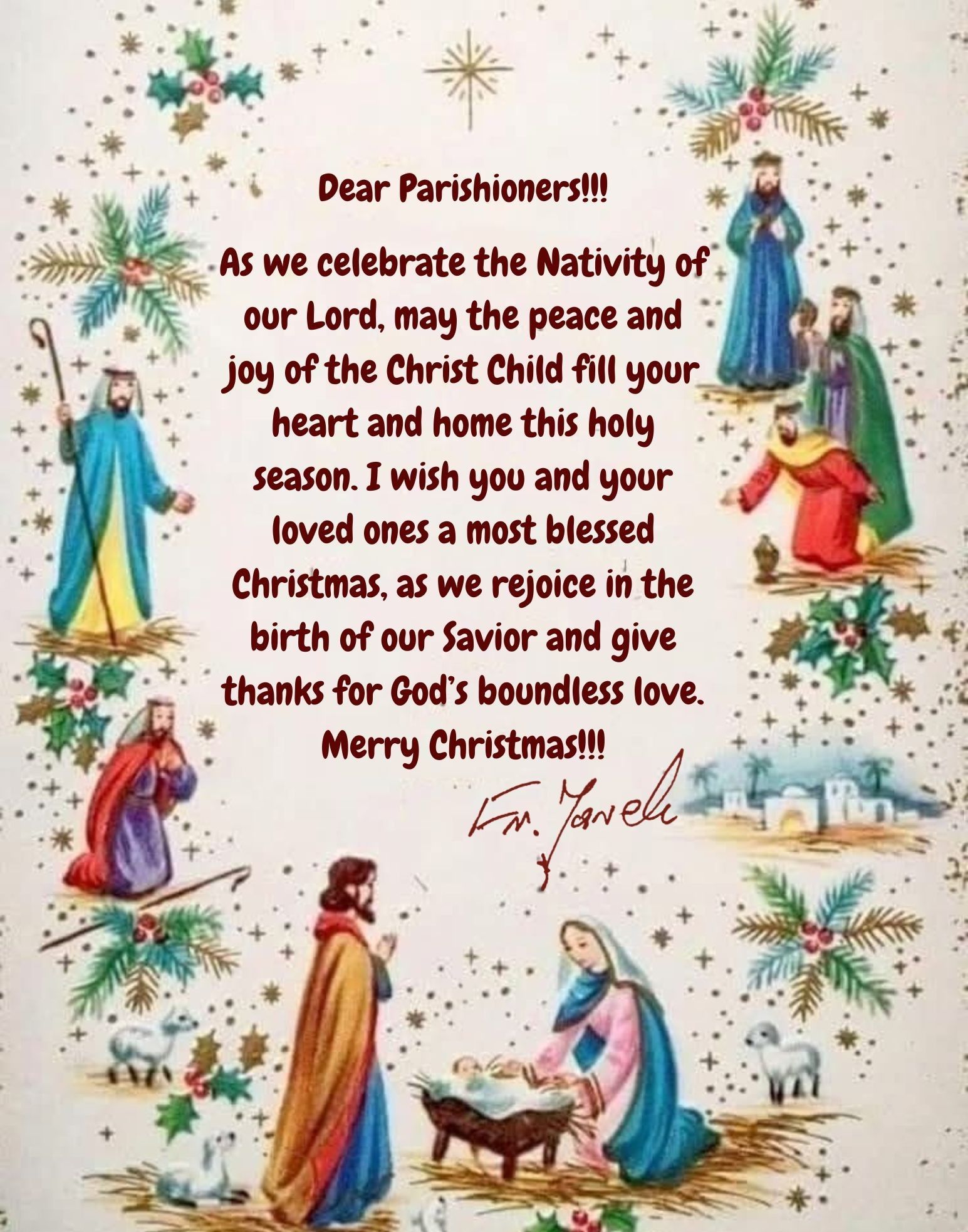1. Please remember to register or re-register your family. 2. We are in need of lectors, especially for 5:30 PM and 11 AM Masses. If you are interested in volunteering, please call or come to the parish office for more information. 3. Thank you to everyone who gave blood at the blood drive. Vitalant’s goal was 45 units, and they collected 54. This means the Blood Drive helped save up to 162 lives. For all three blood drives of 2025, we helped save up to 375 lives, which exceeded the goal of one per day. 4. The funeral for Fr. Joshe Duplissey will be held on Monday, December 15, at 10 AM, at San Felipe de Neri in Albuquerque. We have posted a flyer with all the information. 5. Due to Fr. Jarek’s helping with the Reconciliation Service in Carlsbad, there will be no Adoration this Thursday, December 18. 6. On Saturday, December 20, at noon, we will have a Rehab & Fall-Prevention Workshop with Tomasz Jankowski, Director of Therapy Operations at Eastern New Mexico Medical Center. Please RSVP by Monday/tomorrow, December 15. See the poster for more information. 7. There will be an Advent Reconciliation Service on Monday, December 22 nd , at 6 PM. 8. On December 23 rd , Fr. Jarek would like to visit homebound parishioners for confession, anointing of the sick, and communion. If you would like Fr. Jarek to visit, or you know someone who would, please call the office no later than Monday the 22 nd . 8. Now, Parish Council members will share important information with us.
